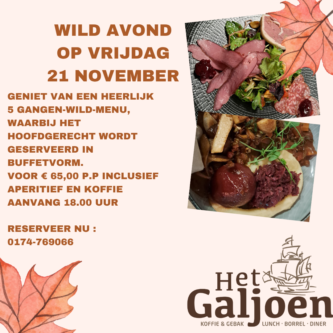 Wild Avond 21 november door admin | okt 10, 2022 | Algemeen, Nieuws Wild avond vrijdag 21 november Reserveer nu: 0174-769066